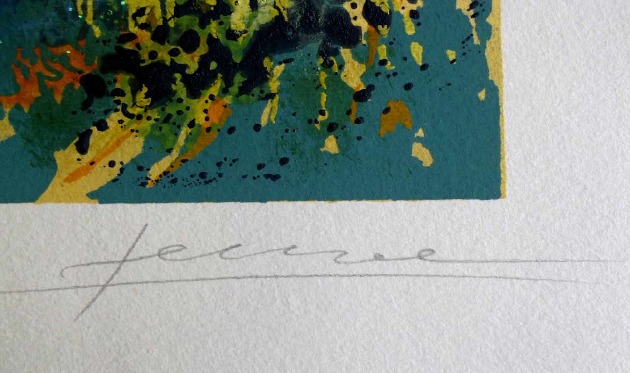 Grafica policromatica del pittore MARCO PESSA. Copy 63/150. 24 x 37 cm.