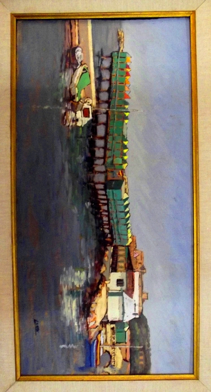 Quadro olio su compensato del pittore LANDI. 22 x 45 cm.