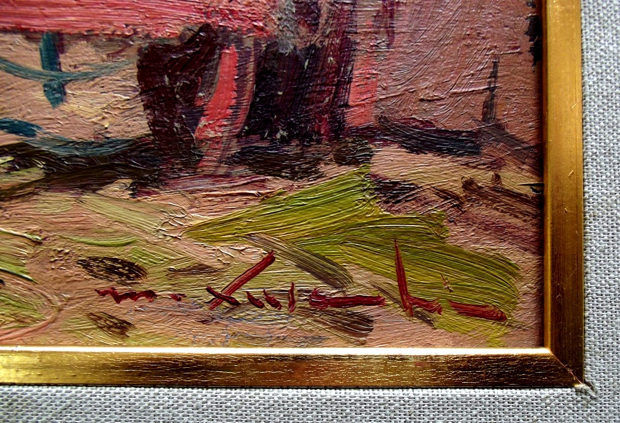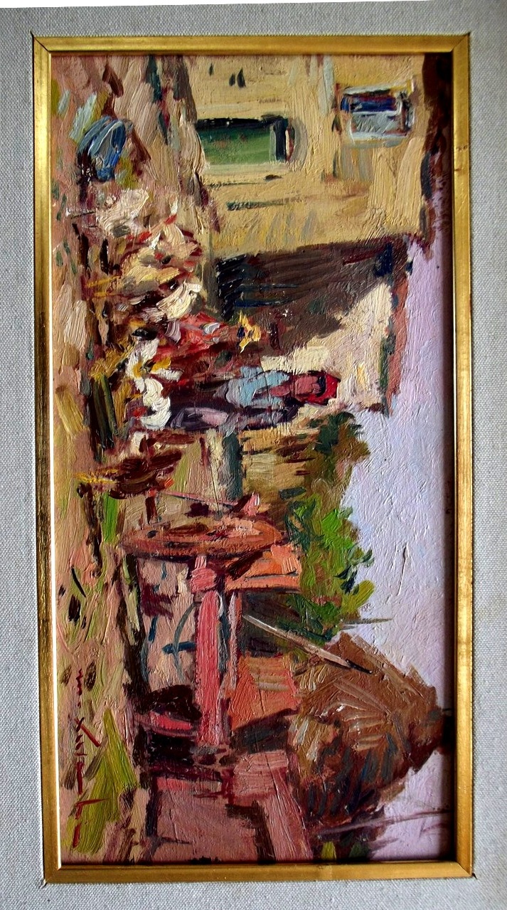 Quadro olio su compensato del pittore MASANIELLO LUSCHI. 20 x 40 cm.