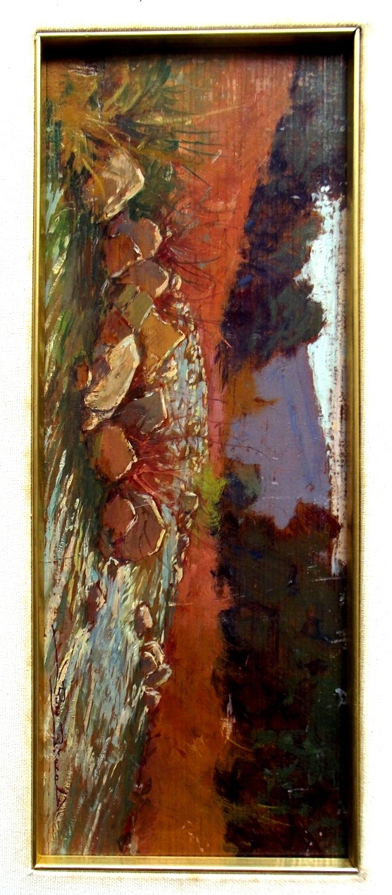 Quadro olio su tavola del pittore PIERO PASTACALDI. 14 x 36 cm.