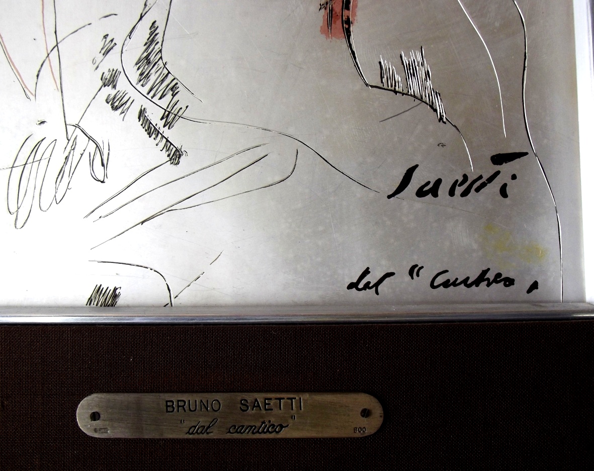 Quadro, incisione su lamina Argento, del pittore BRUNO SAETTI. 20 x 25 cm.