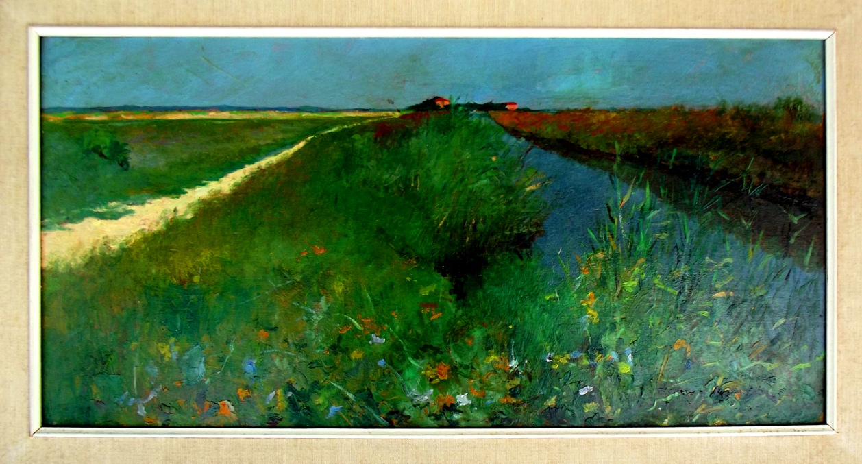 Quadro olio su compensato del pittore FRANCO LIPIZER. 30 x 60 cm.
