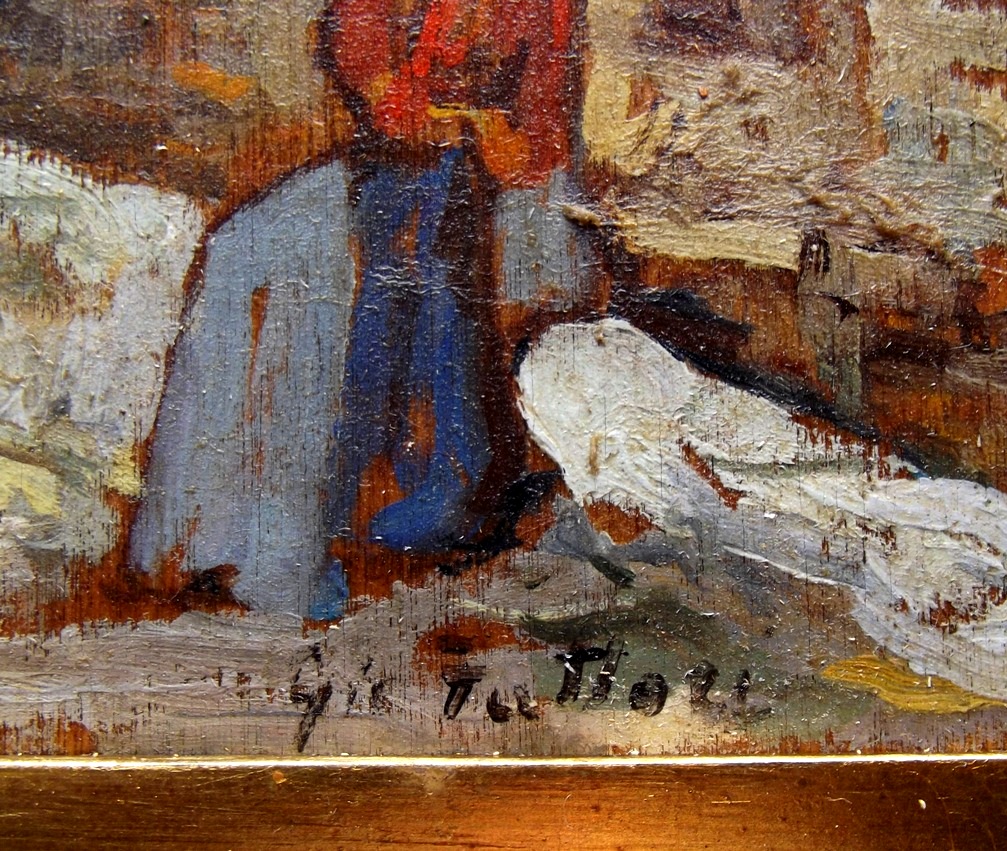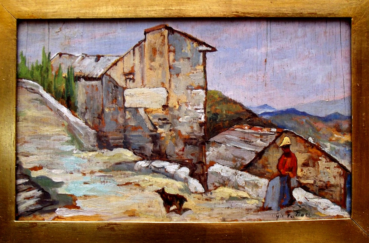 Quadro olio su compensato del pittore GIOVANNI FATTORI. 17,5 x 31 cm.