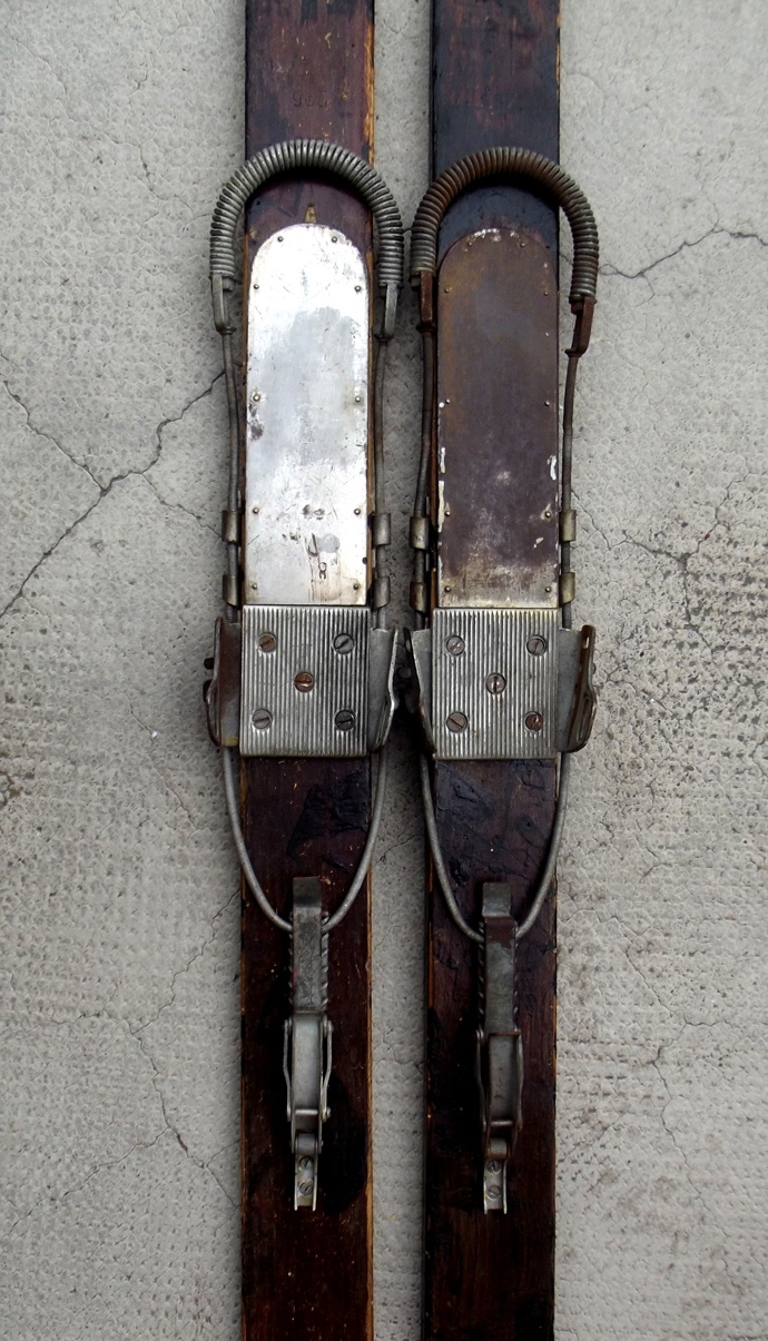 Sci d'epoca in legno con attacco a molla. Lunghezza 183 cm.