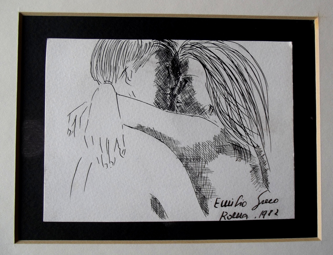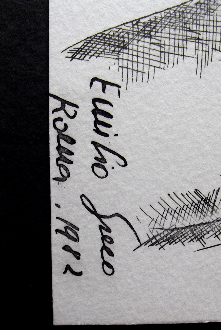 Quadro, china su cartoncino, del pittore EMILIO GRECO. 13 x 18 cm. Collezione di Eraldo Di Vita.