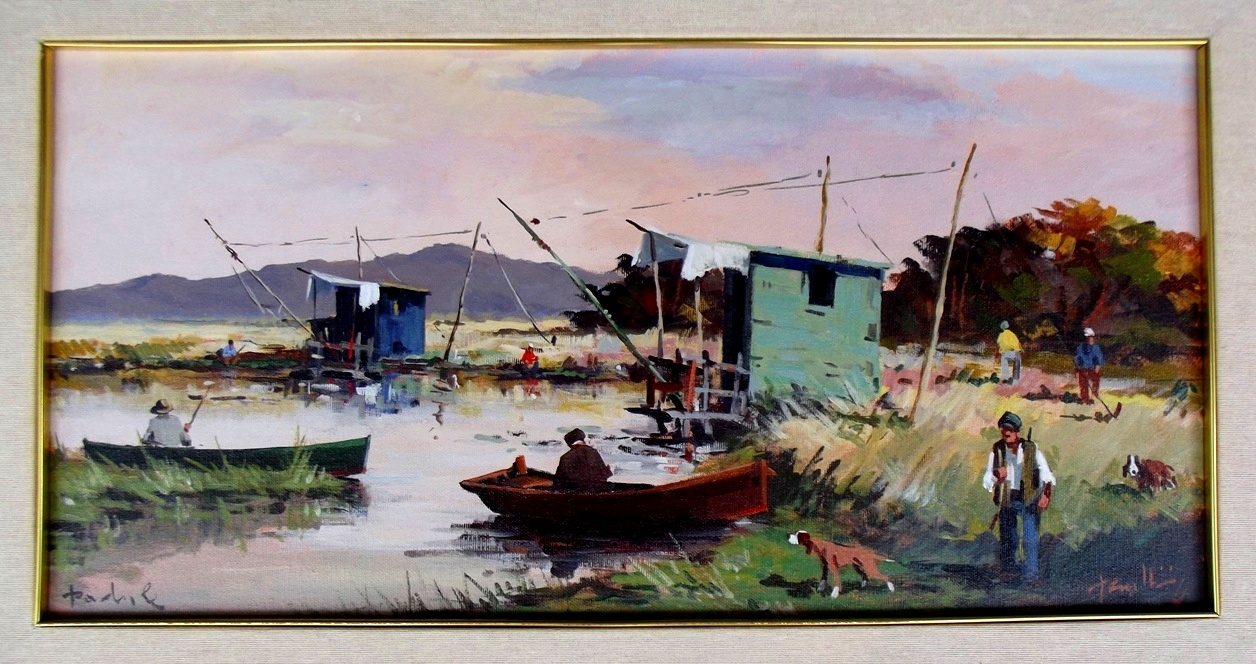 Quadro olio su tela del pittore MARIO ROMBOLINI. 30 x 60 cm.