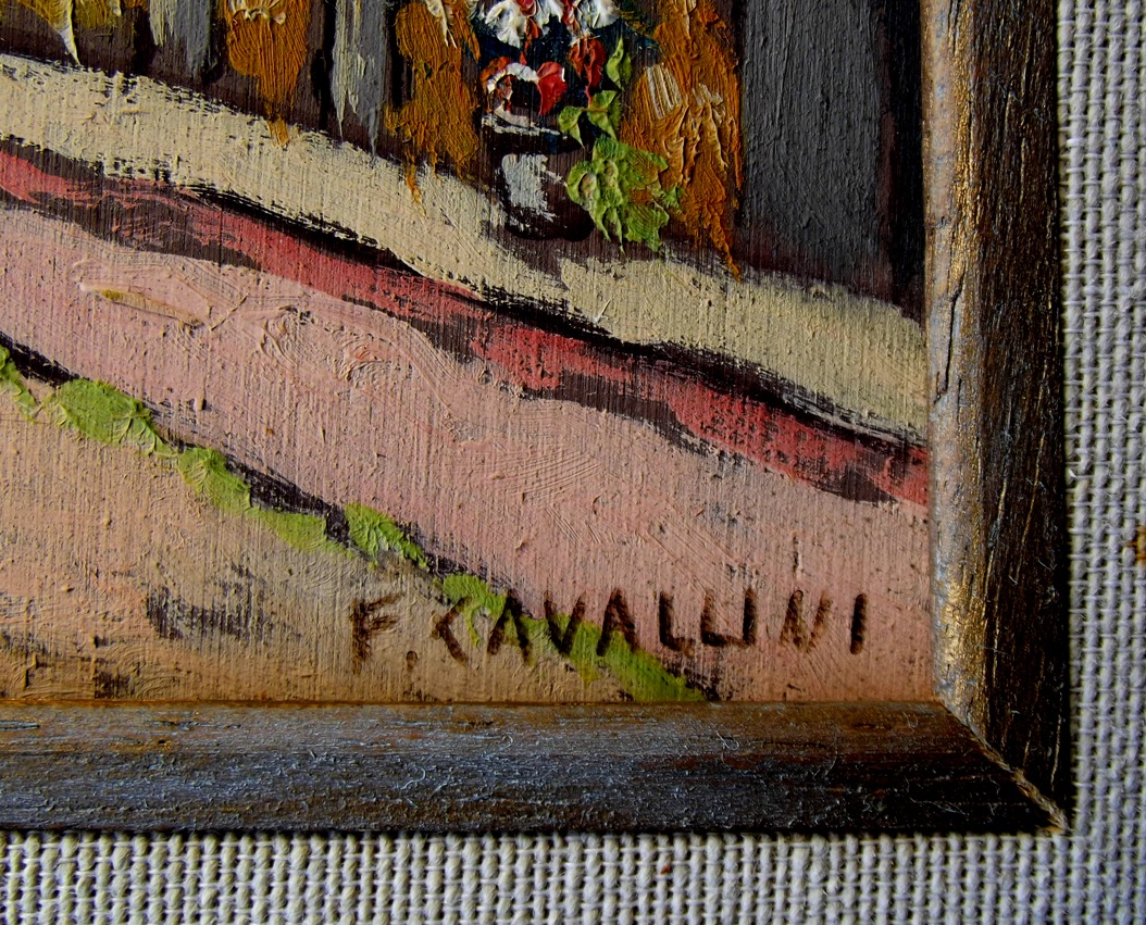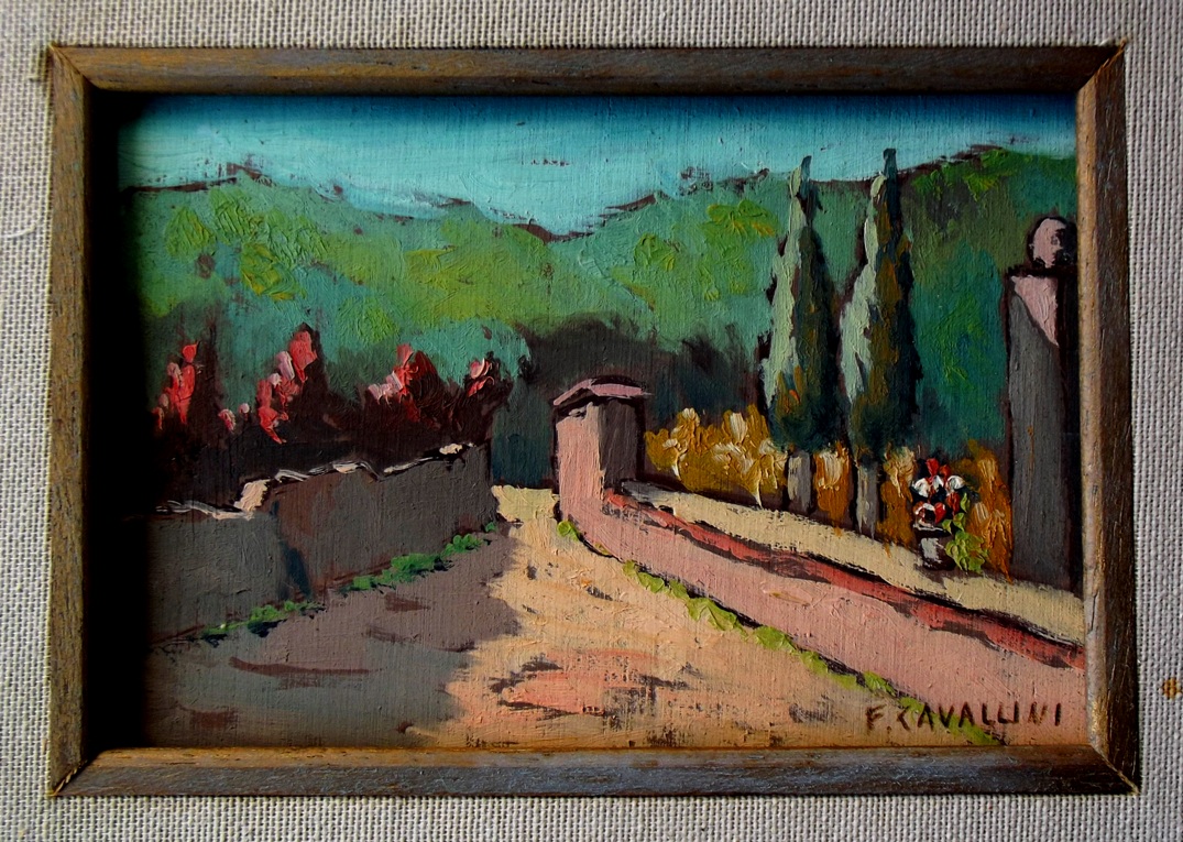 Quadro olio su compensato del pittore F. CAVALLINI. 10 x 15 cm.