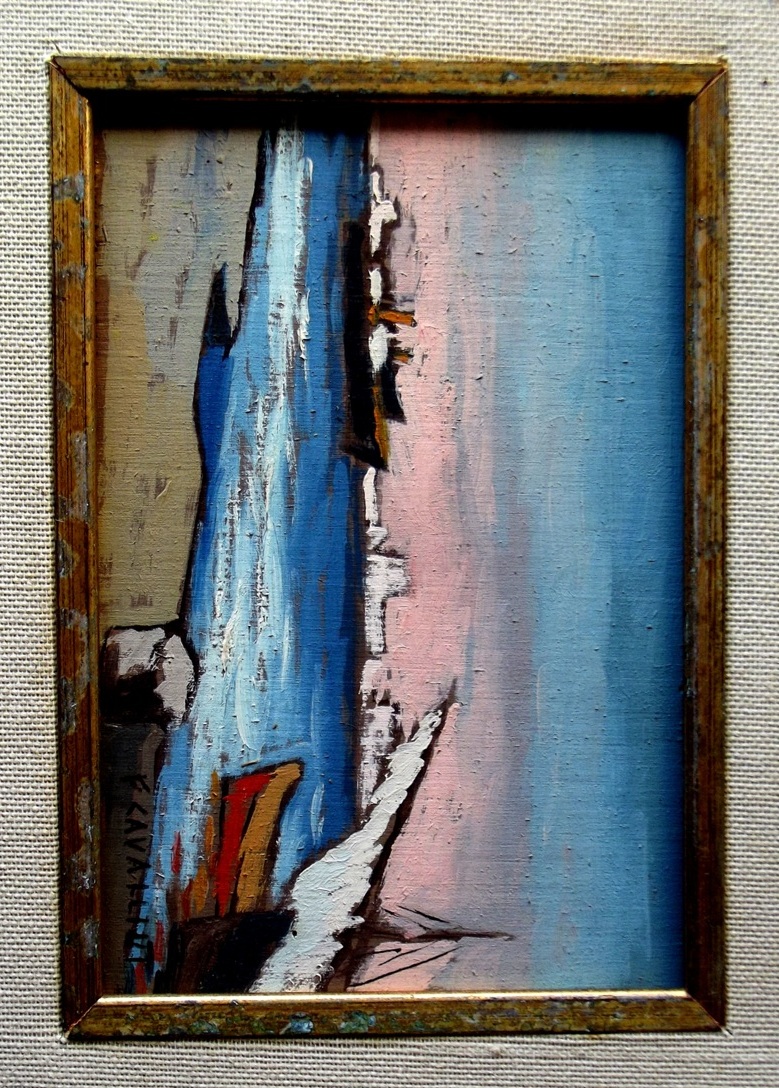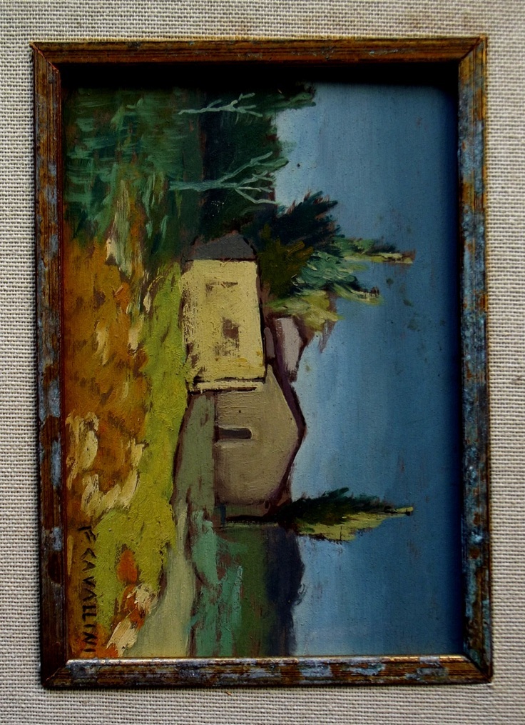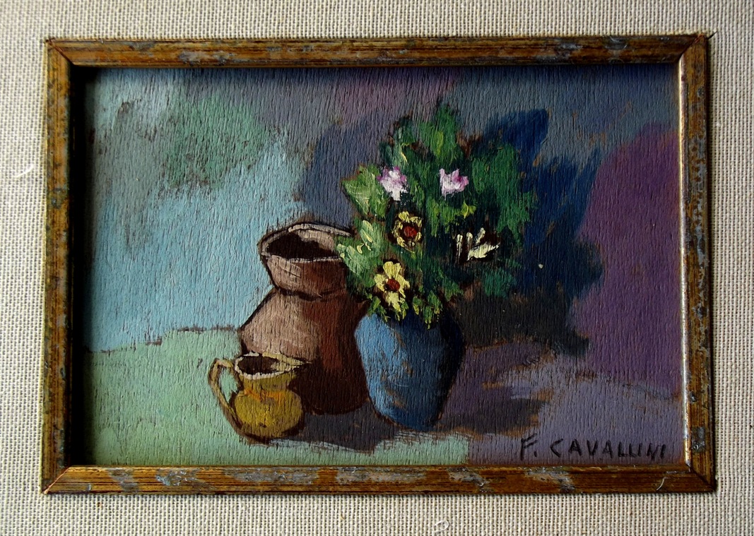 Quadro, trittico, olio su compensato del pittore F. CAVALLINI, 3 X 10 X 15 CM.