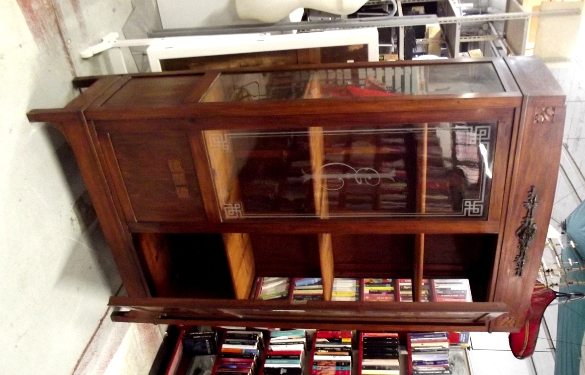 Vetrina-argentiera Liberty in eccellente stato d'uso. L.P.H. 125 x 43 x 225 cm.