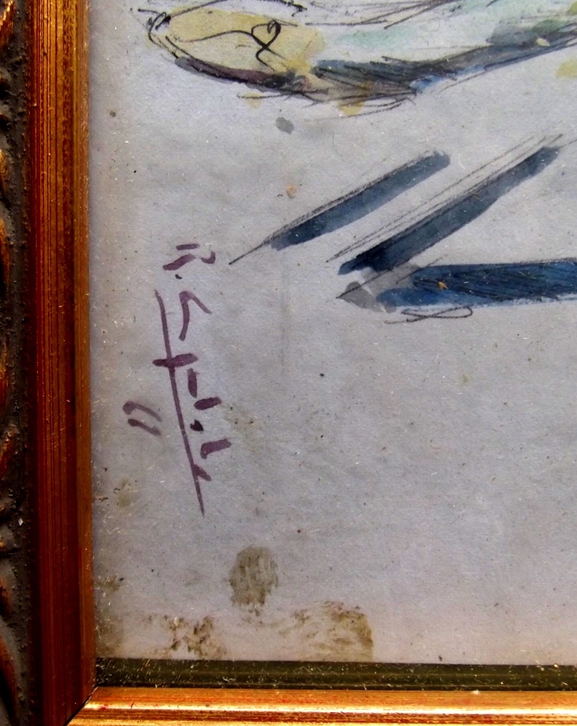Quadro del 1962, disegno a tecnica mista su carta, del pittore RUBENS CAPALDO. 14 x 19 cm.