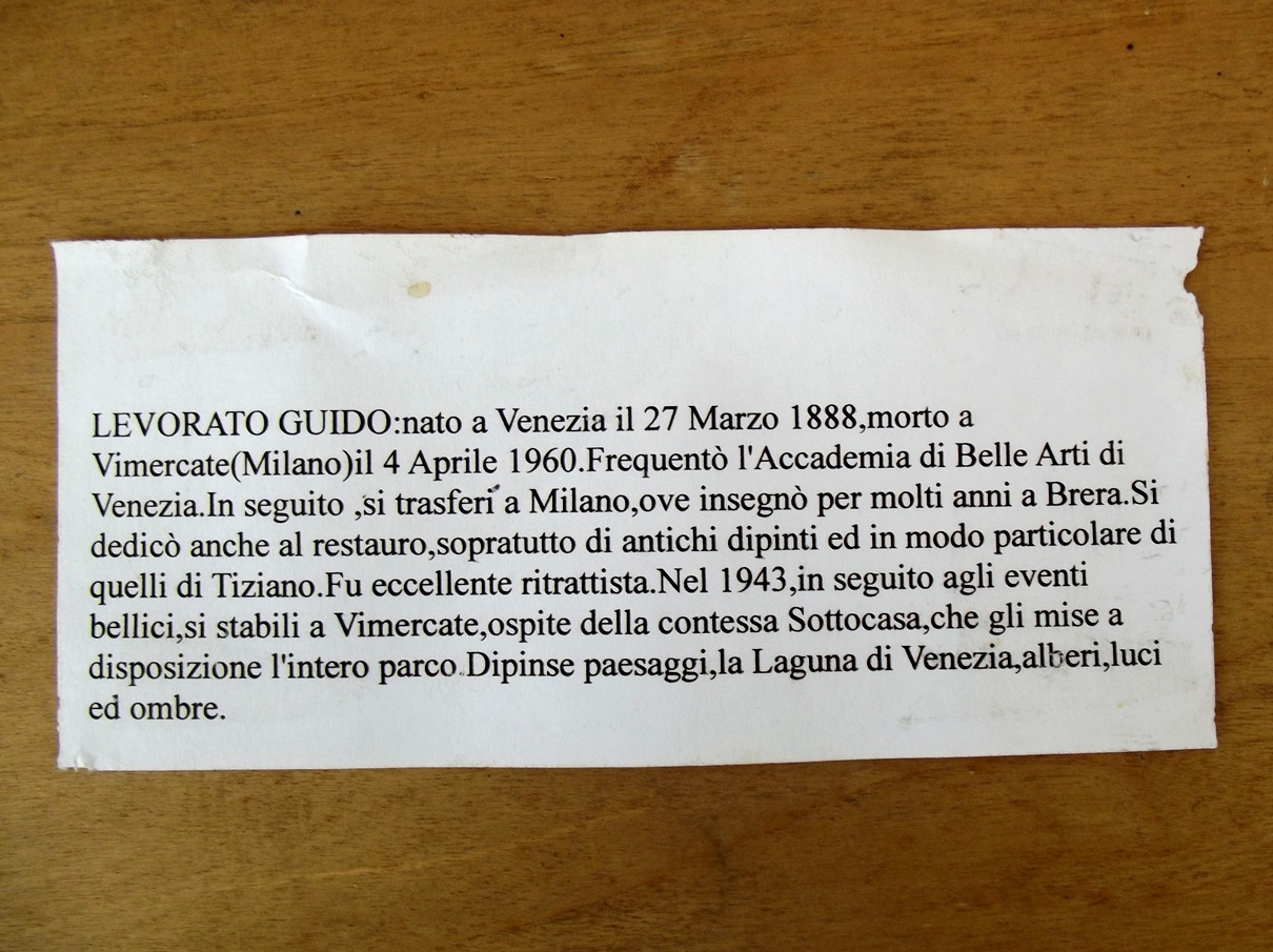 Quadro olio su compensato del pittore veneziano GUIDO LEVORATO. 21 x 36 cm.
