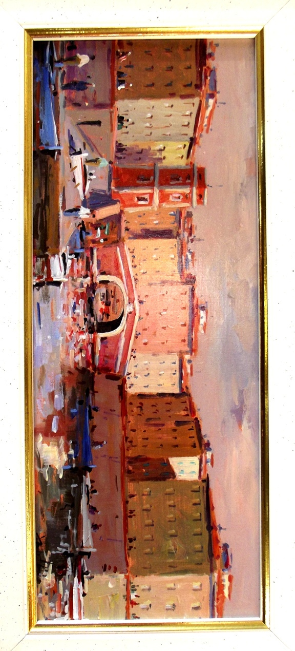 Quadro olio su masonite del pittore MARIO ROMBOLINI. 12 x 30 cm.