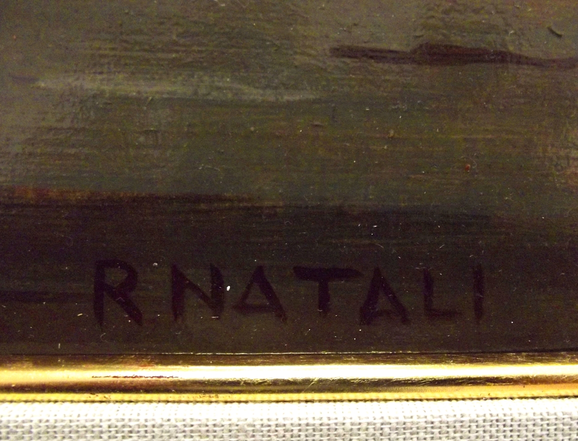 Quadro olio su masonite del pittore RENATO NATALI. 30 x 40 cm. Timbrato a tergo dalla Galleria "Il Fante di Picche"