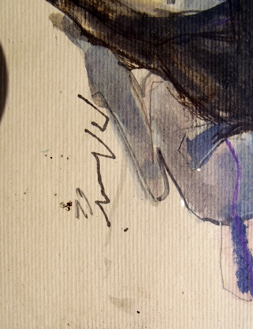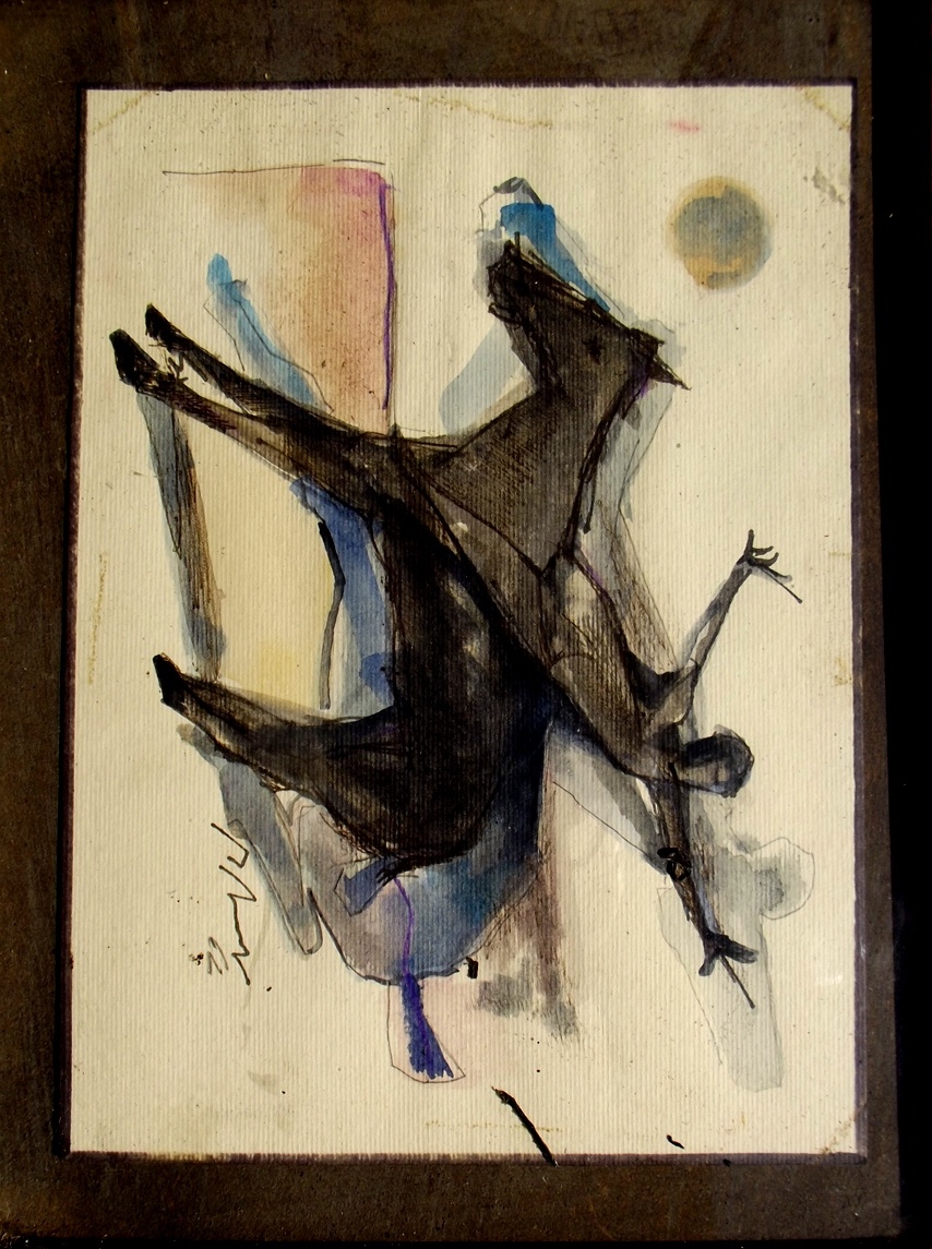 Quadro tecnica mista su cartoncino a firma MARINO MARINI. 14,5 x 19,5 cm.